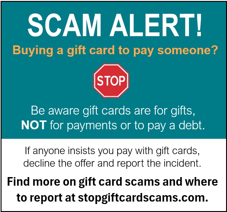 Consumers of Gift Cards Can Be Targeted by Scammers. Understand the Scams. See the Red Flags. Know Your Role In The Scams. Discover How To Avoid the Scams. Learn How To Report The Scams.