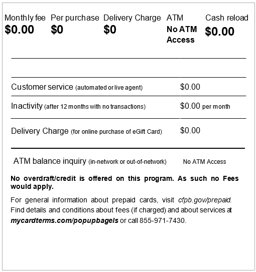 The following information is provided about the Fees charged by the Card Issuer regarding your Gift Card.